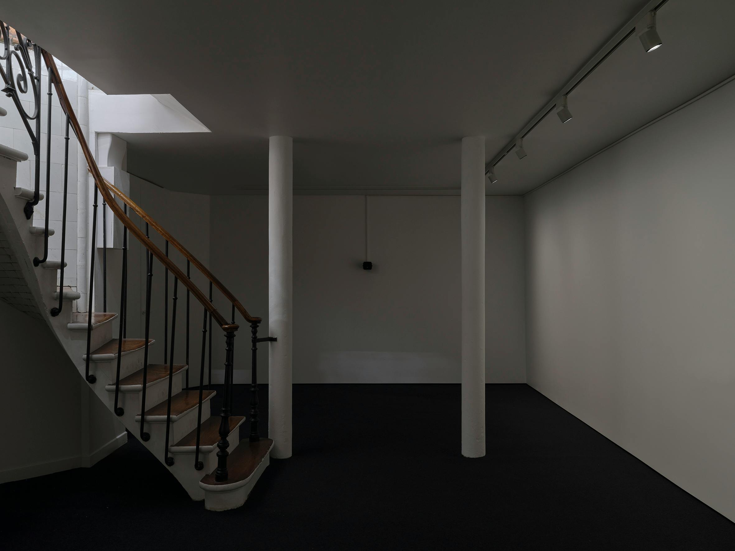 Threading through this atmospheric relay of absorption and reflection, a bassline emanates from the basement. A sustained note of a viola da gamba gut string hums. Legs open, the body in the x position, as the central string is struck. The instrument’s vibrational line in space cusps the vibrational line in the space. Recalibrating the axes. To contact the barely invisible, barely bodies, barely thresholds.