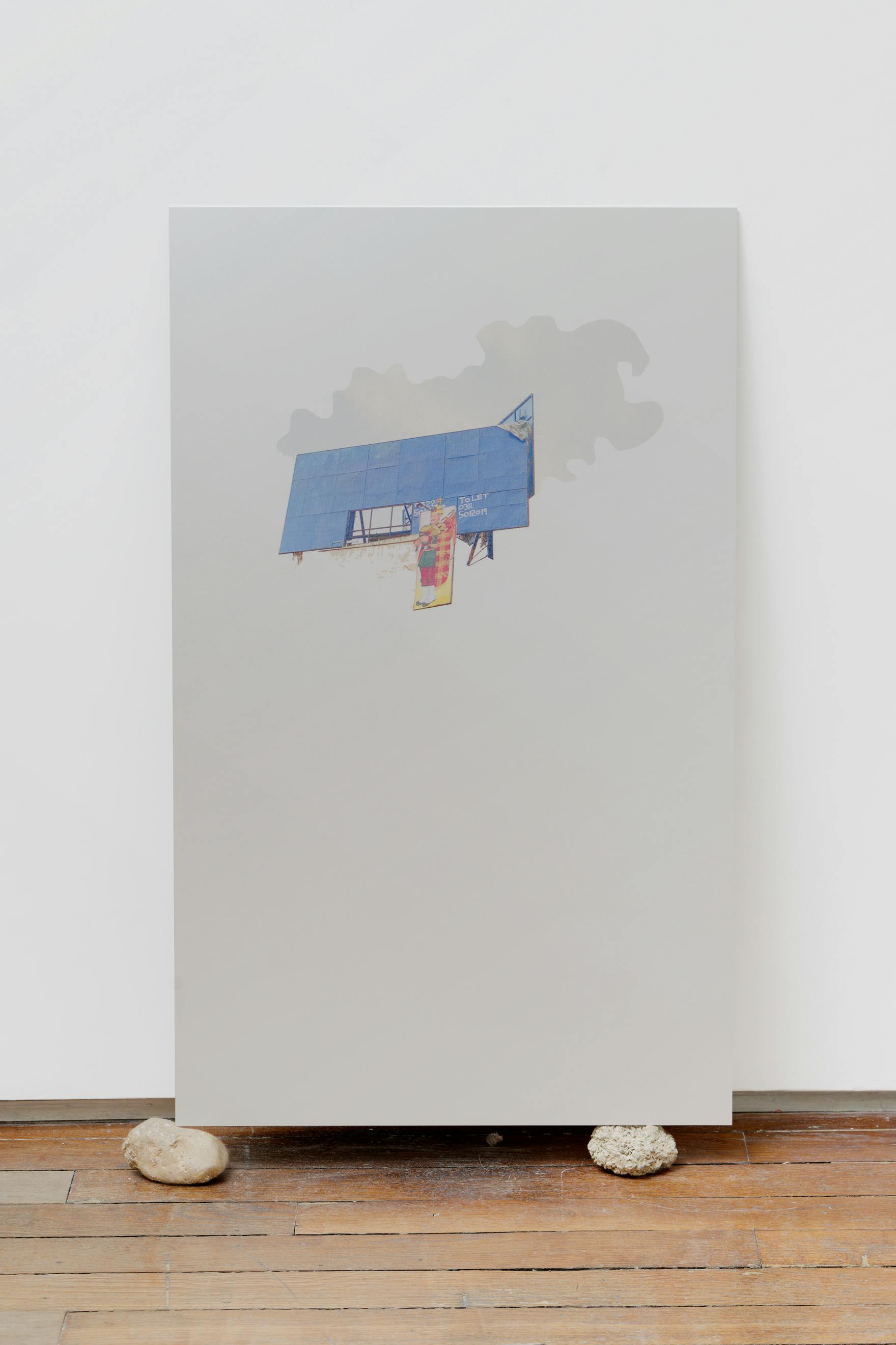 UV print on aluminum, resting on rocks from location 91.44 x 55.88 x cm (36 x 22 inches) (panel), 6 x 11 x 7 cm and 5 x 9 x 13 cm (2.36 x 4.33 x 2.75 and 1.96 x 3.54 x 5.12 inches) (rocks)
