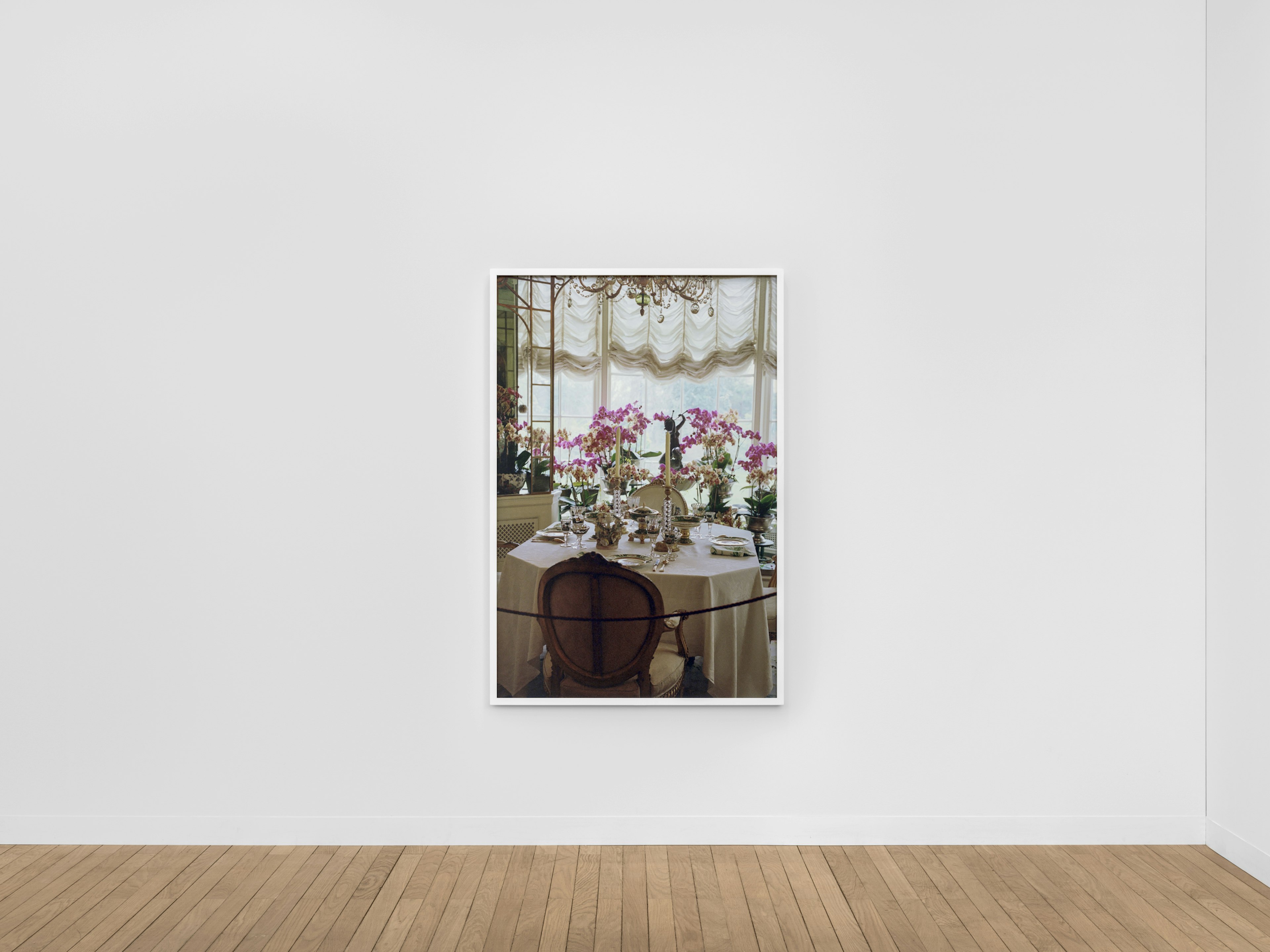 For Kovel nothing is lost to history, building on documentary photographer An-My Lê’s idea that photographs seek to document a history of culture. For instance, Kovel’s Marjorie Merriweather Post, Dining room with Sèvres porcelain from the Louis XV service, Hillwood Estate, Washington, D.C. (2025) recalls Louise Lawler’s Pollock and Tureen, Arranged by Mr. and Mrs. Burton Tremaine, Connecticut (1984). This porcelain dining set, also featuring a tureen, is a part of the Sèvres Royal Collection, the most exorbitant service by the porcelain manufacturer during the eighteenth century.