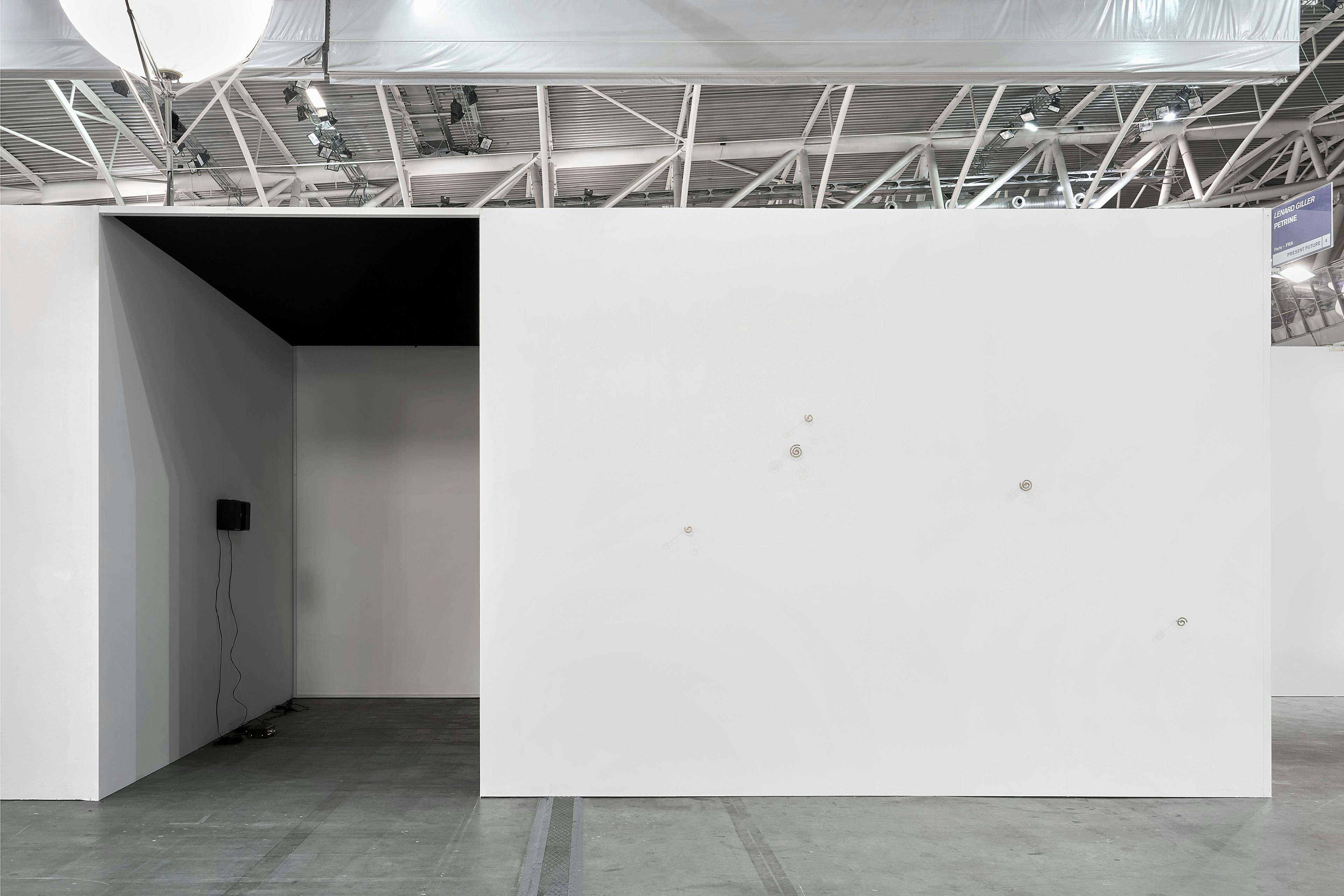 A constellation of coils (2023) is installed on the outside wall of the booth.