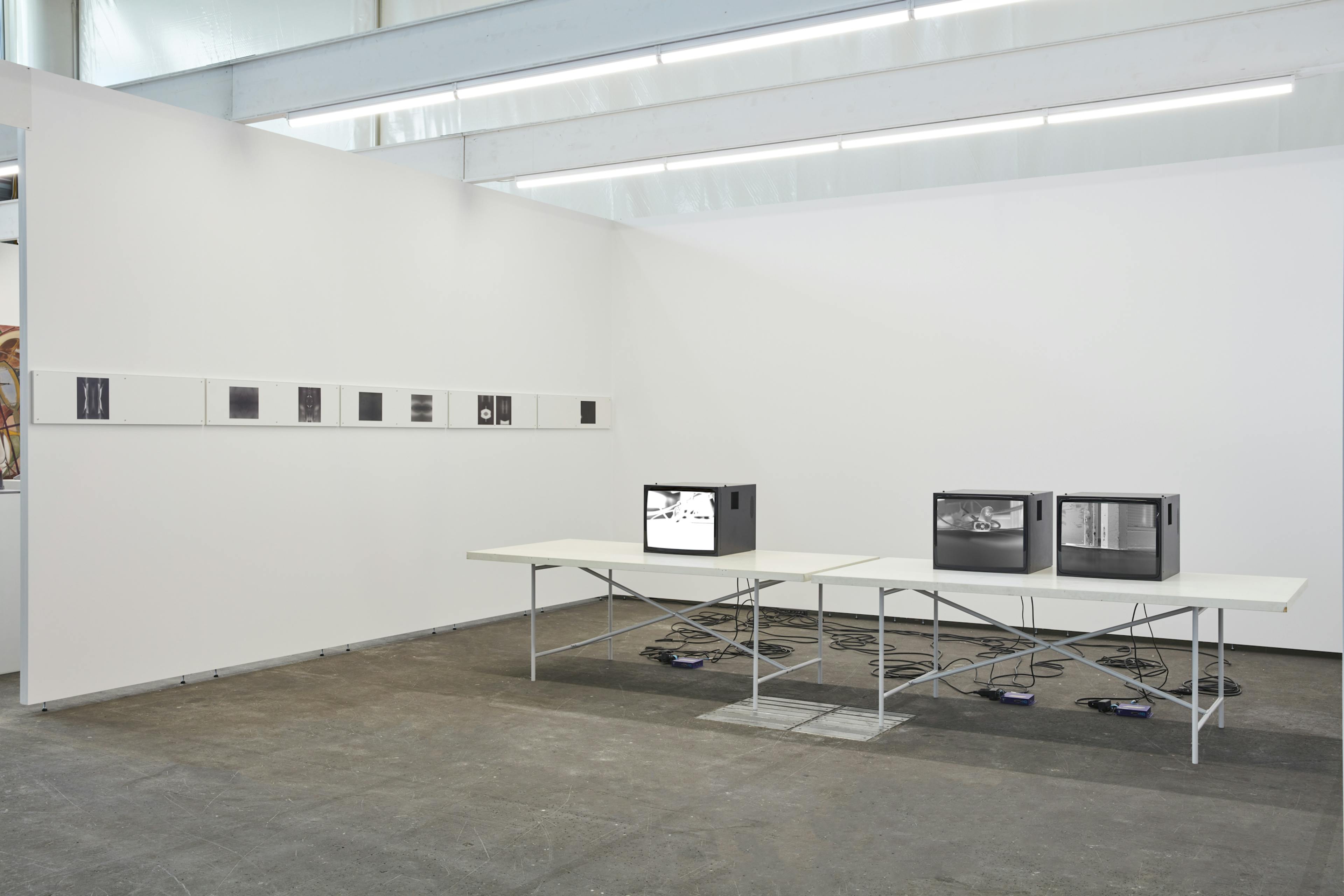 Analog B&W film records a studio environment which is later processed by the developer, stop bath, and fixer. Similarly, the adaptation of the eye to the changing levels of exposure in the video is performed by three of its key structures: the iris, retina, and pupil. The video plays a morphing sequence of images of a place stripped of any identifying features other than the tools that constitute the twentieth century studio setting, from modernism to the dawn of the digital age. Adaptation and change involve loss and gain, both of which are difficult to register in the blink of an eye.